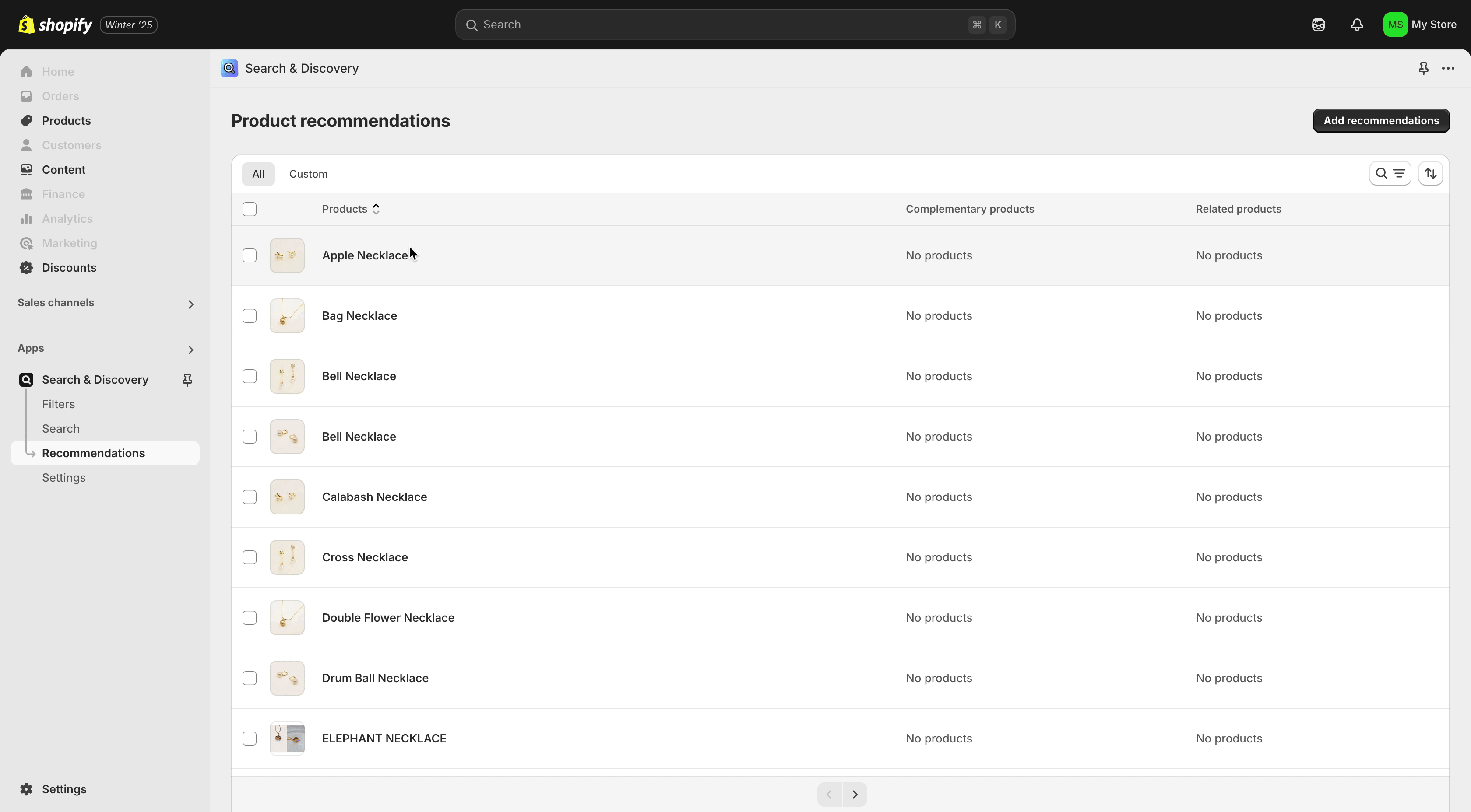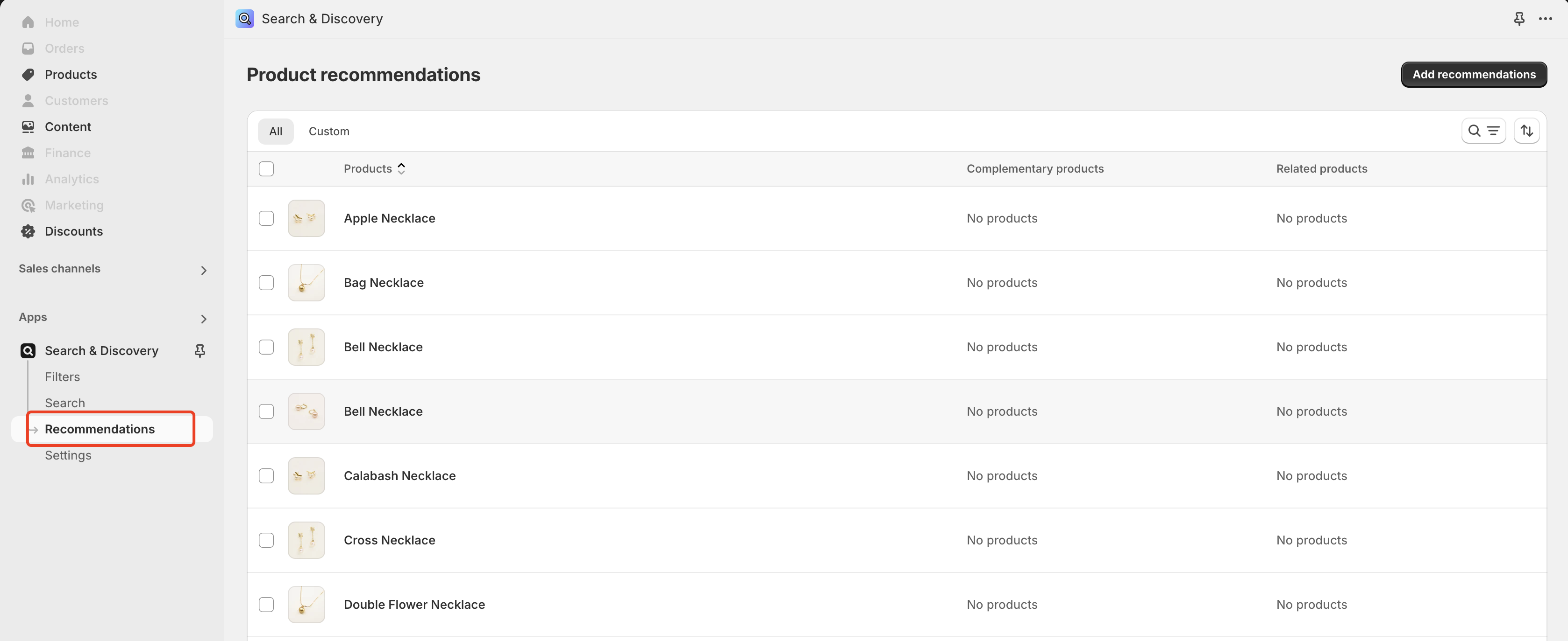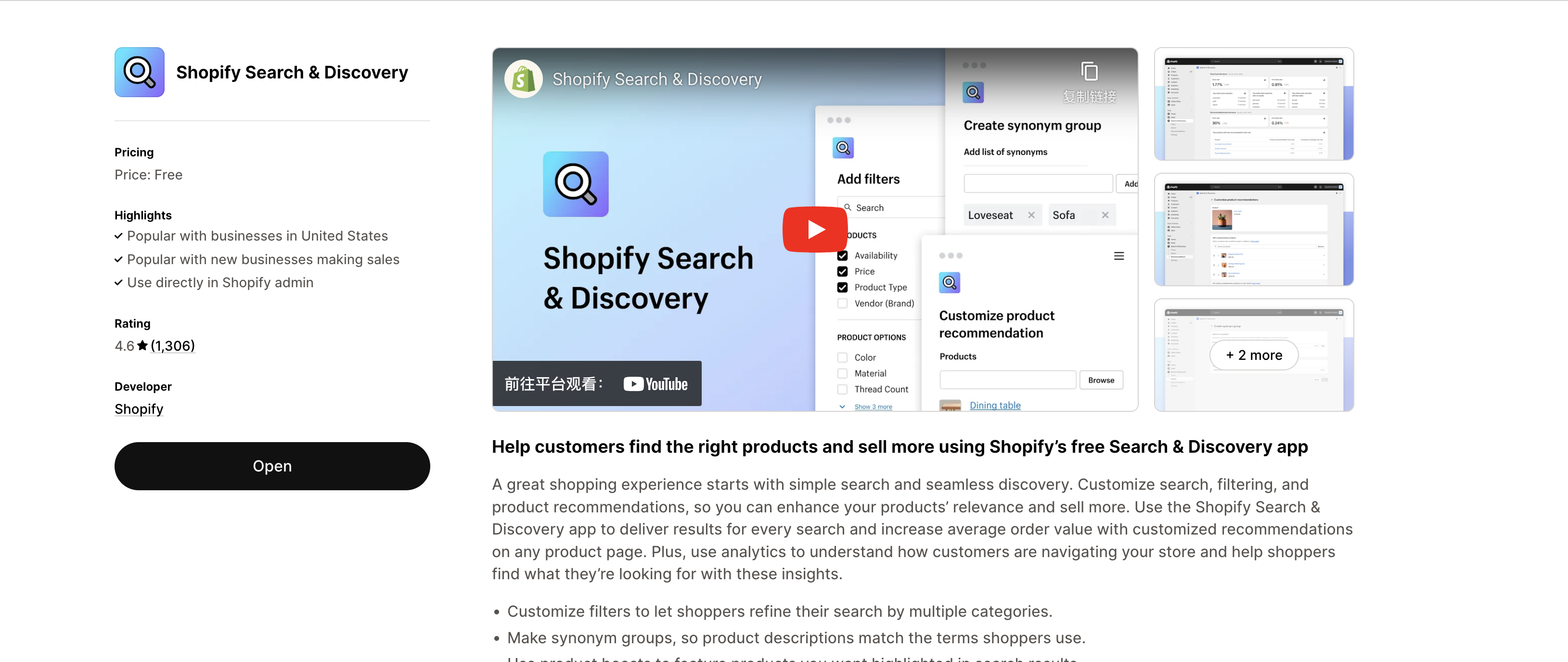 * 在 Shopify 后台，进入 **应用 > Search & Discovery**。