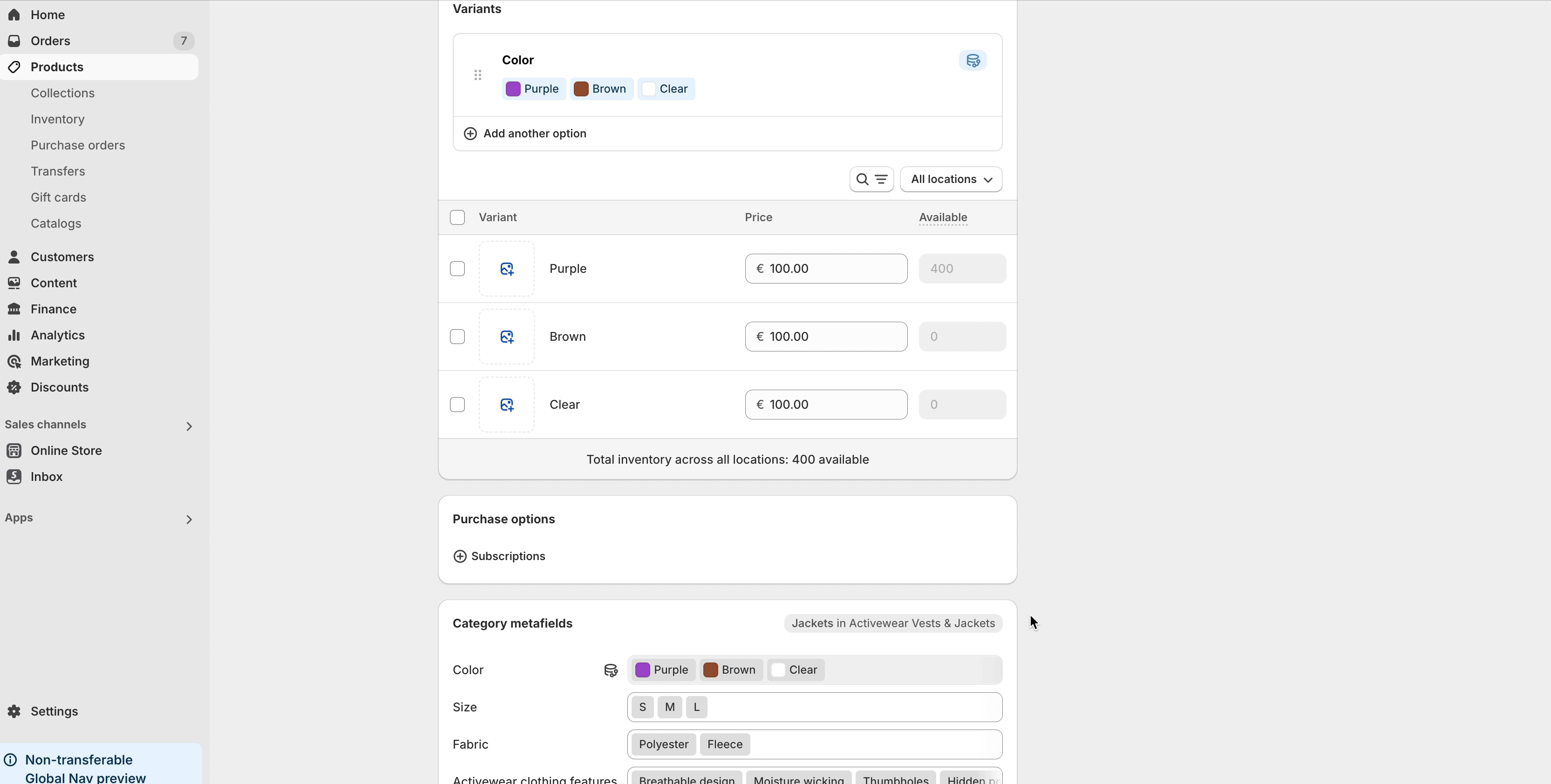 As shown in the image, add color attributes to your products.